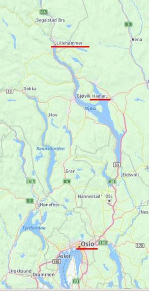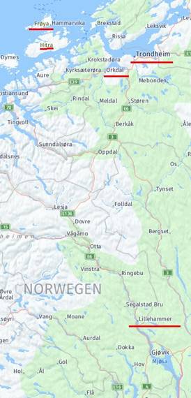 Nächste Etappen: Hamar – Elverun – Rena - Tynset - Berk åk - Orkdal –