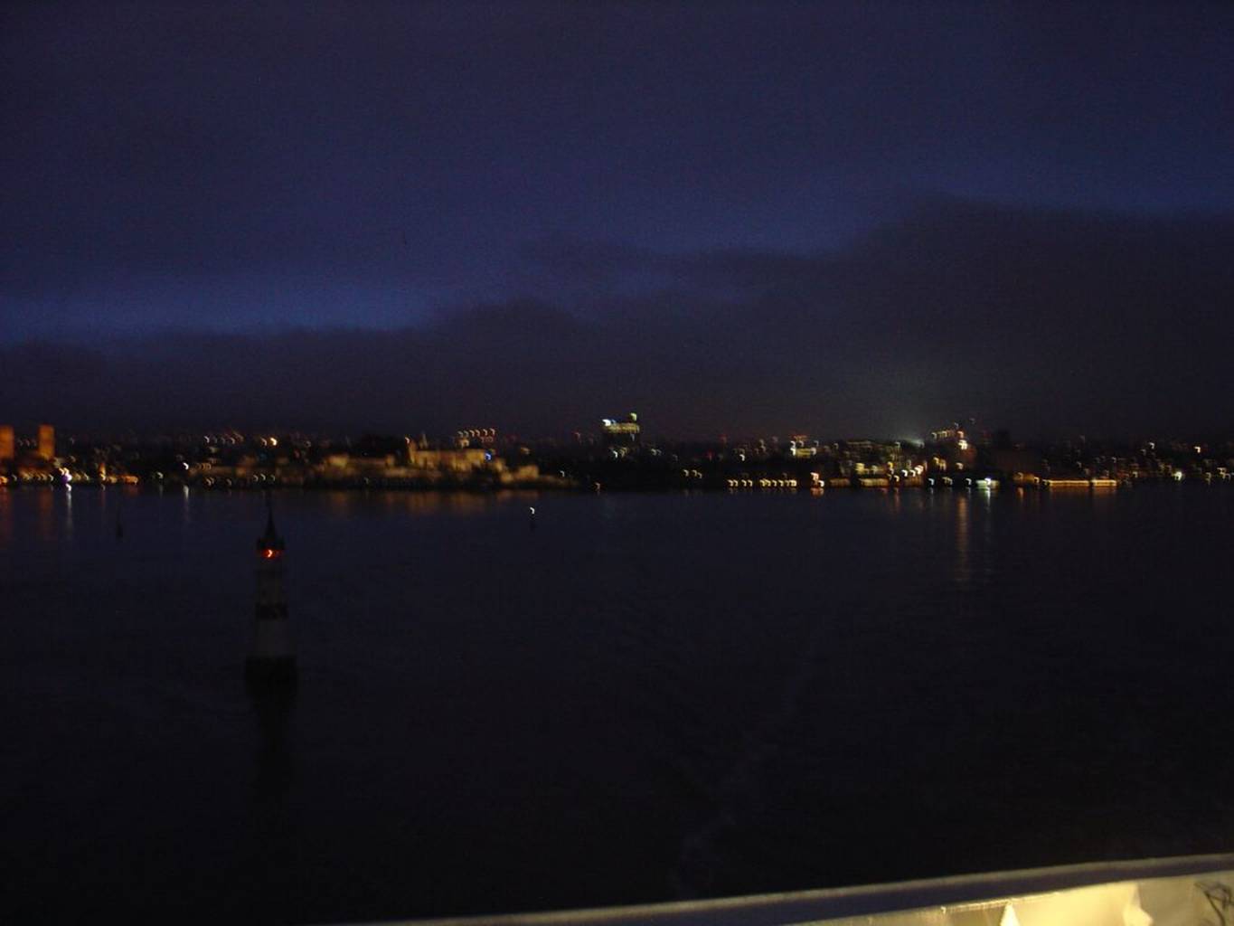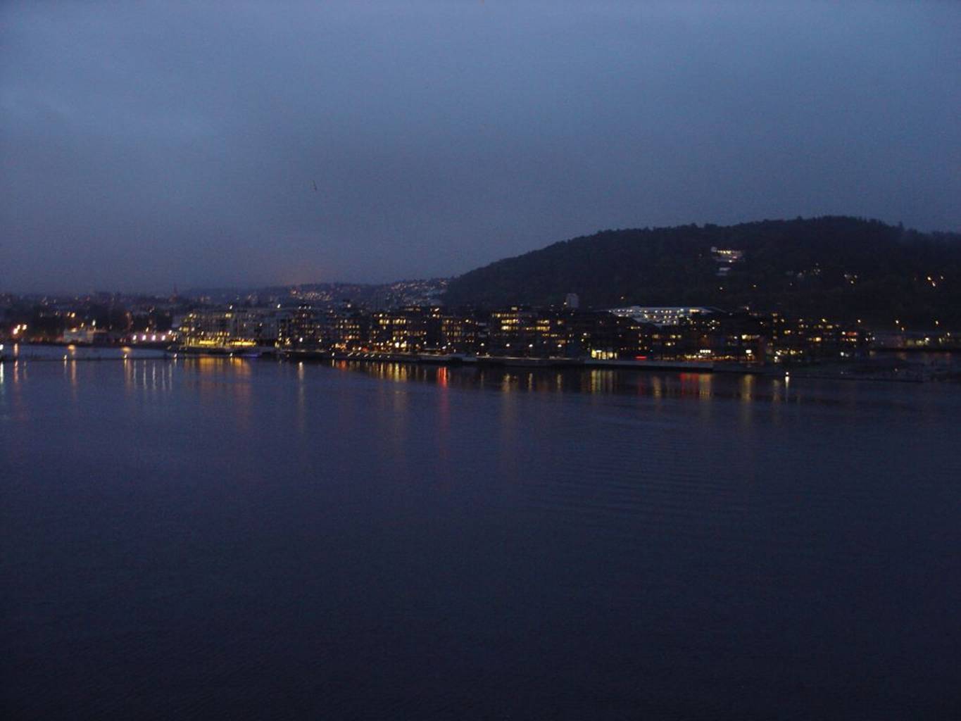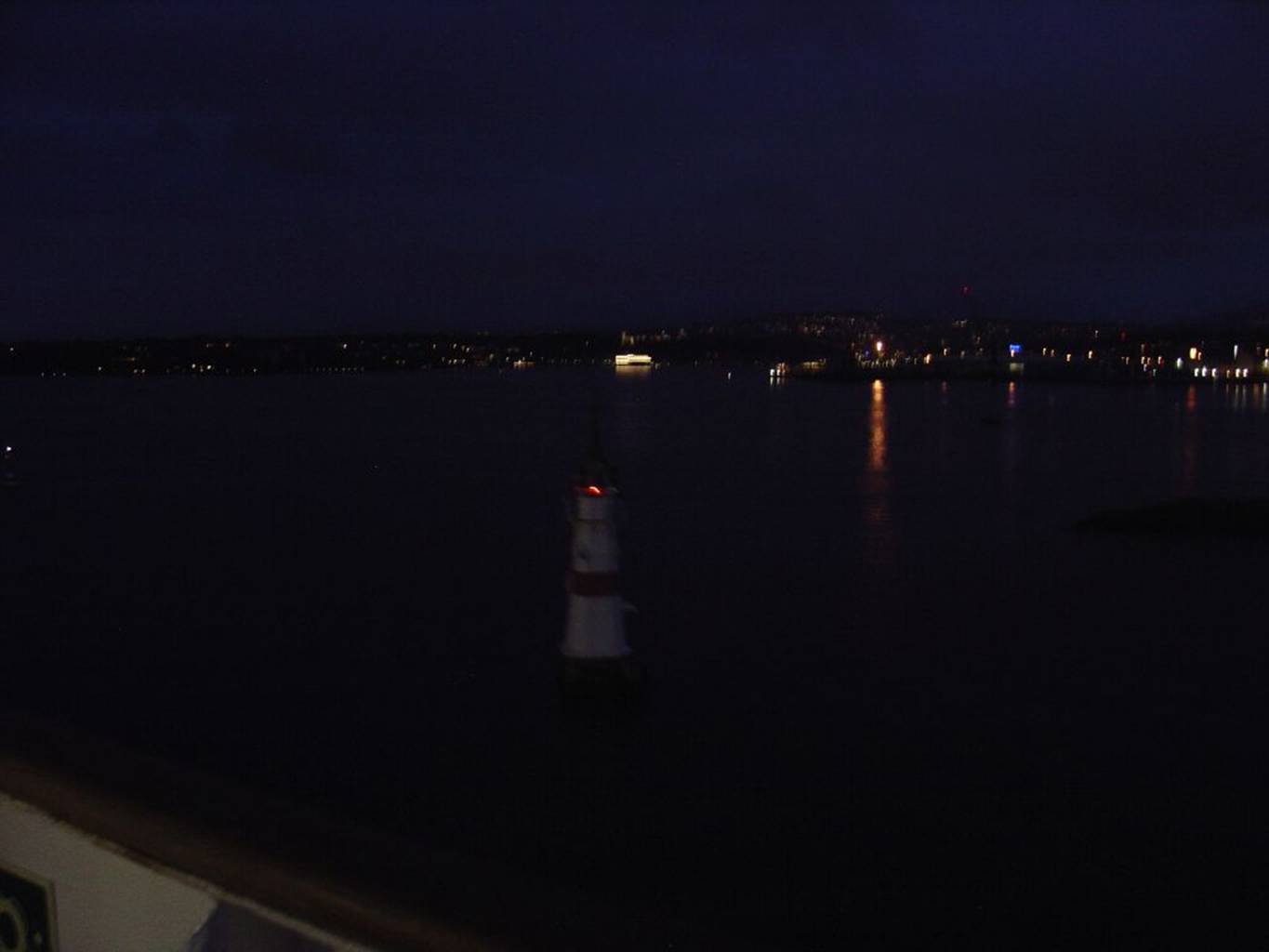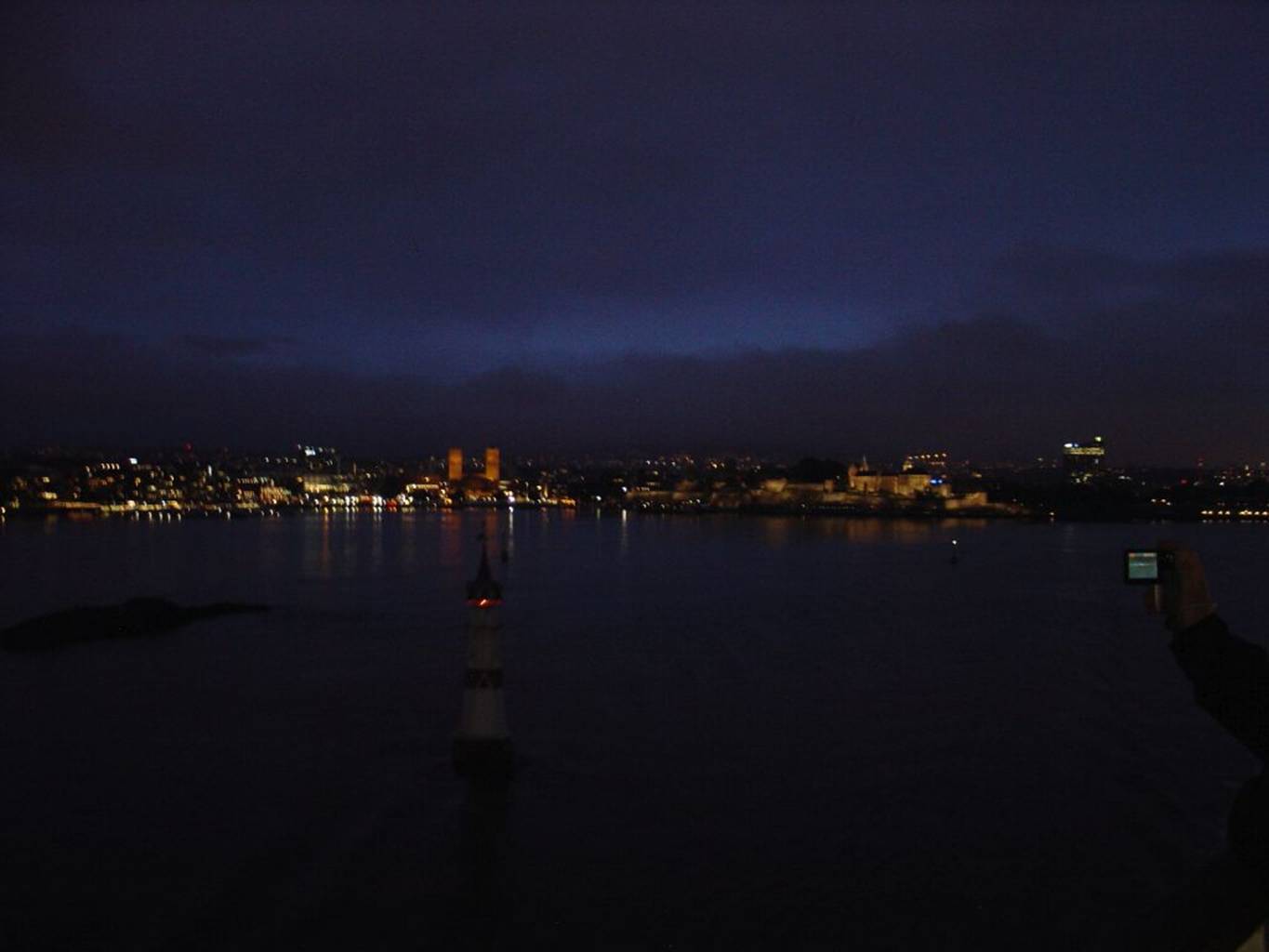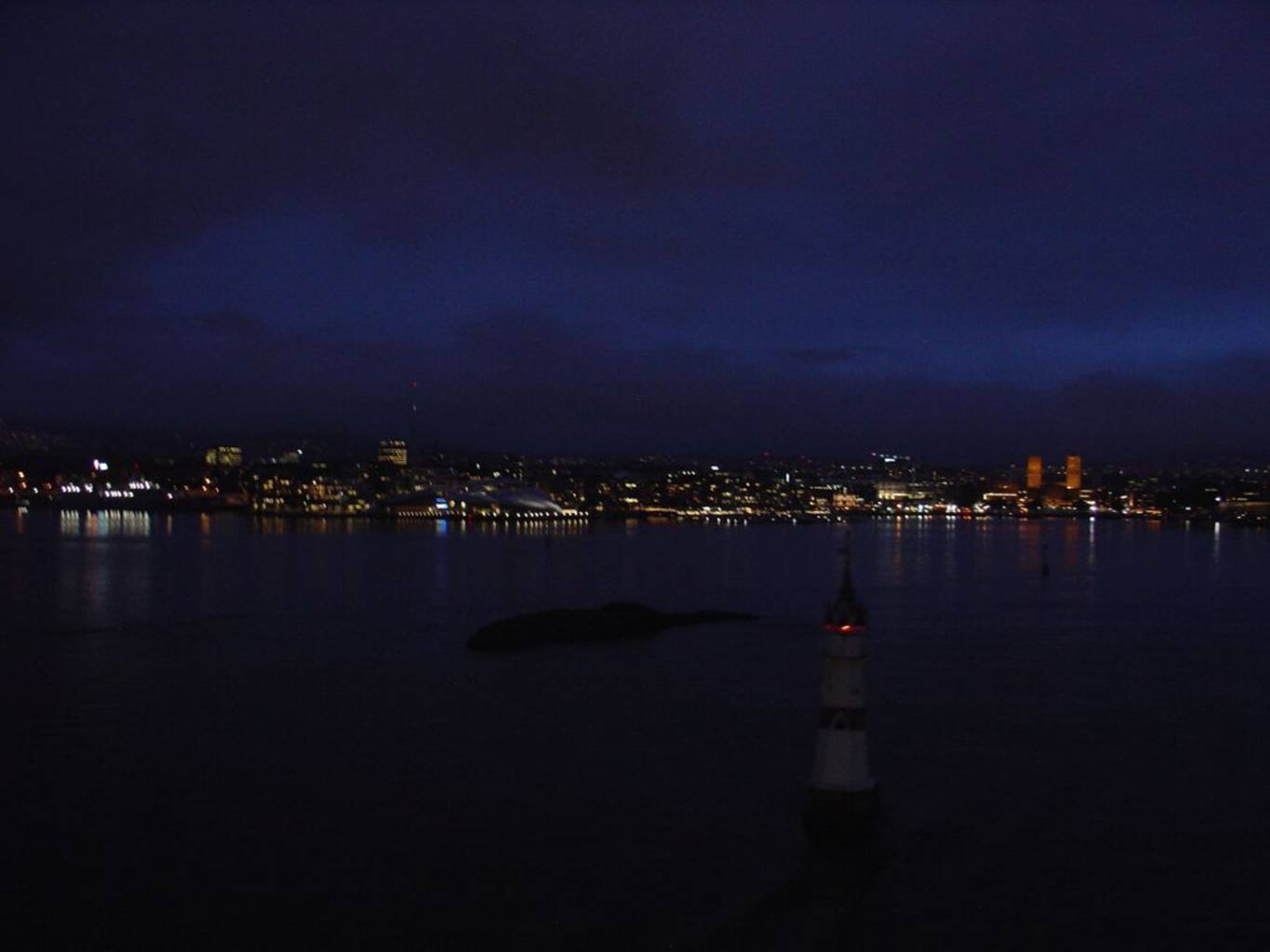 Mini-Leuchtturm (Boje) und Nachtpanorama Oslo